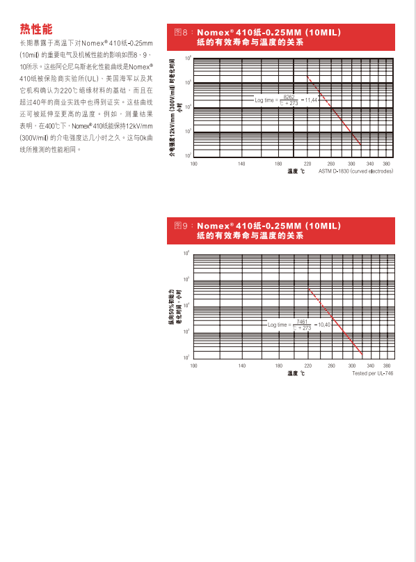 NOMEX绝缘纸具有UL材料温度等级220°C的认可,代表即使连续置于220°C下能保持有效性能10年以上;