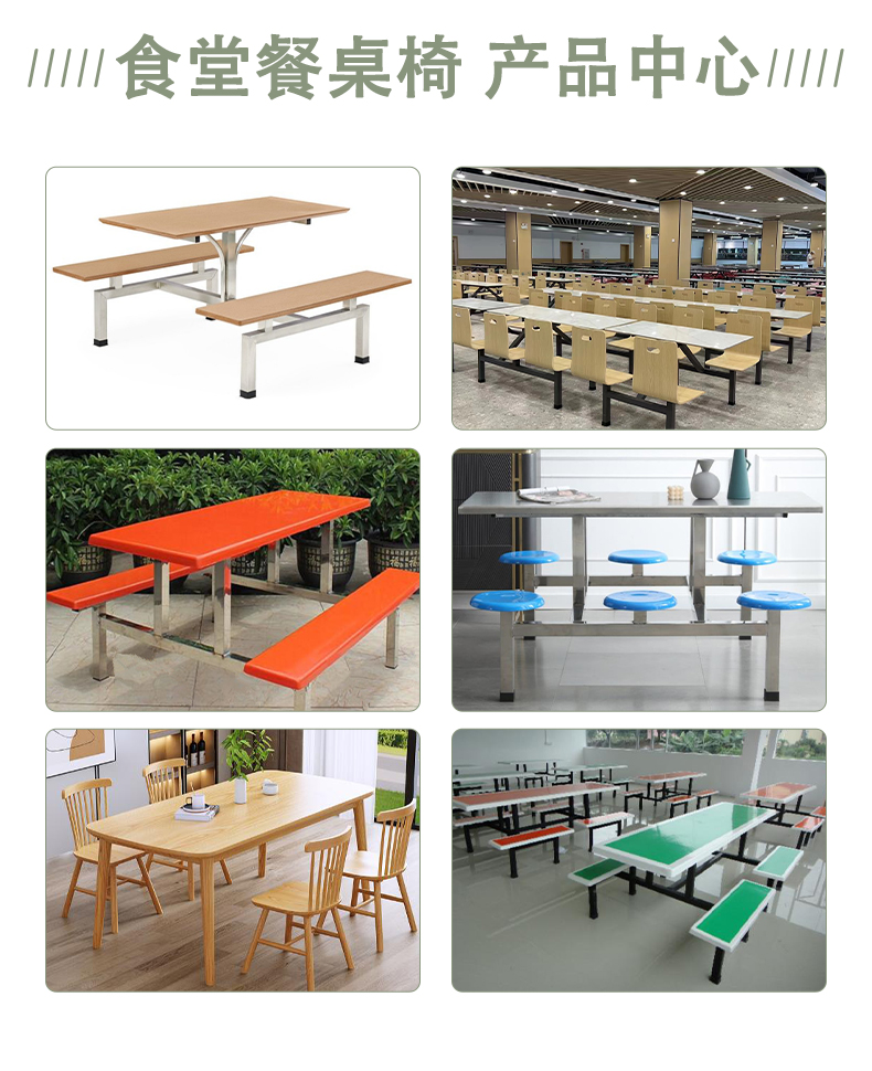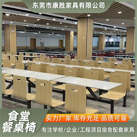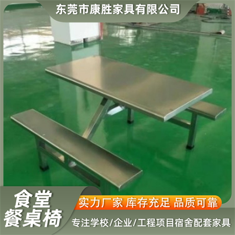 员工食堂餐桌椅条凳连体餐桌4人不锈钢餐台康胜家具