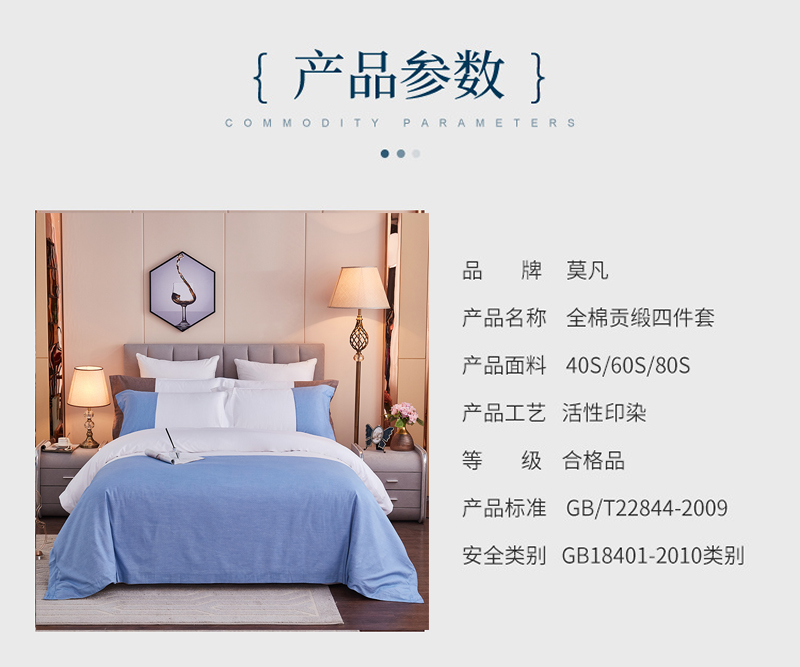 莫凡生产酒店宾馆专用布草纯白色60支纯棉四件套全棉贡缎床上用品