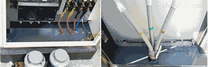 是用于户外电气设备箱体、柜体新型的环保防潮防凝露封堵密封剂,呈现流动性液体状,粘度值比较低,流动性能好,容易渗透,按照10:1重量比混合搅拌均匀,灌注于密封区域表面,胶料可自动找平,填充、密封住细小结构,常温硫化成型后形成镜面效果,可与金属材质、电缆保护套紧密粘合,成为柔韧性较好的高分子密封封堵层,可有效防止小动物等从地下进入封闭箱体内,降低安全隐患;且防潮防凝露性能好,可防止电缆夹层或沟道潮气侵蚀入柜,为电气户外设备提供坚固的防护屏障。新增电缆或者修复已经硫化的封堵层比较方便,因高分子封堵层柔韧性较好,可用木工刀开孔,不会破坏密封封堵层;新增电缆或管道安装好之后,可重新灌入高分子封堵剂即可重新密封该区域。