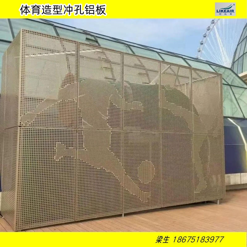 2、运动图案冲孔造型铝板性能比其他装饰材料有很多的优越性,防虫、防火、防潮,而且质轻、强度高,适合各种恶劣的环境。