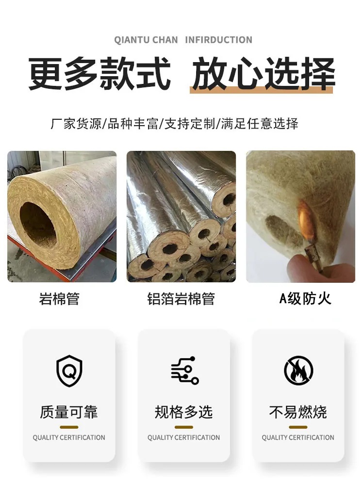 岩棉保温管可以贴单面防火铝箔适用于各种管道的保温。岩棉保温管具有导热系数低,使用温度高、防火不燃、施工便利和性能价格比高等优点。可用于各种管道的保温节能和防冻。