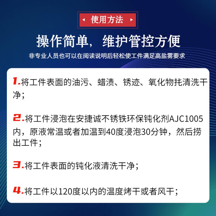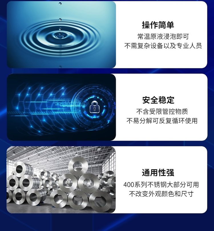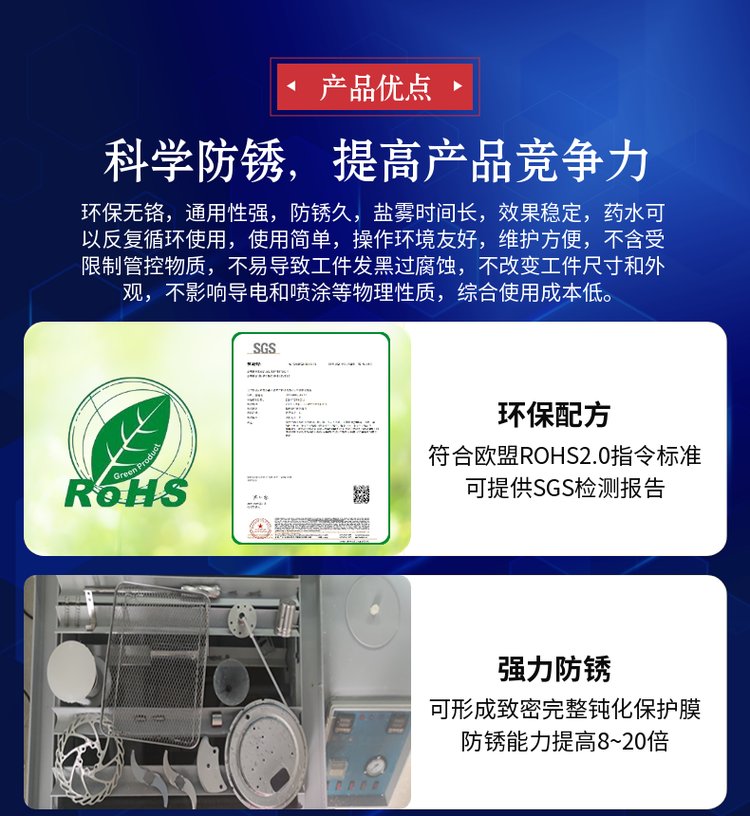 主要用途 | 提高 1CR13不锈钢材质的防锈耐腐蚀能力,延长盐雾测试时间 | ||