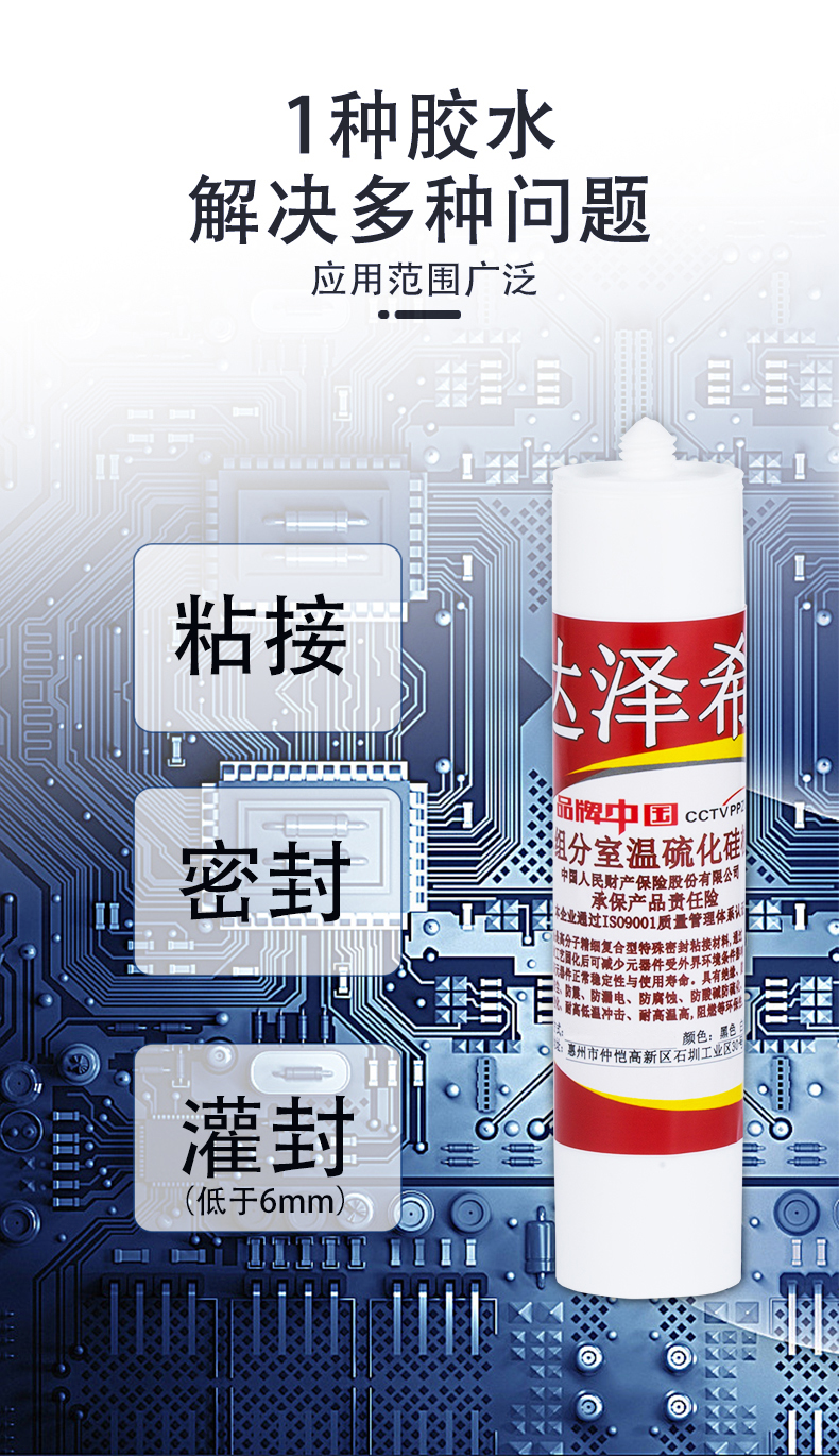 达泽希704硅橡胶电子元器件线路板粘接固定白胶绝缘防水耐高温