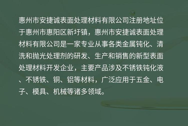 商铺名称:惠州市安捷诚表面处理材料有限公司