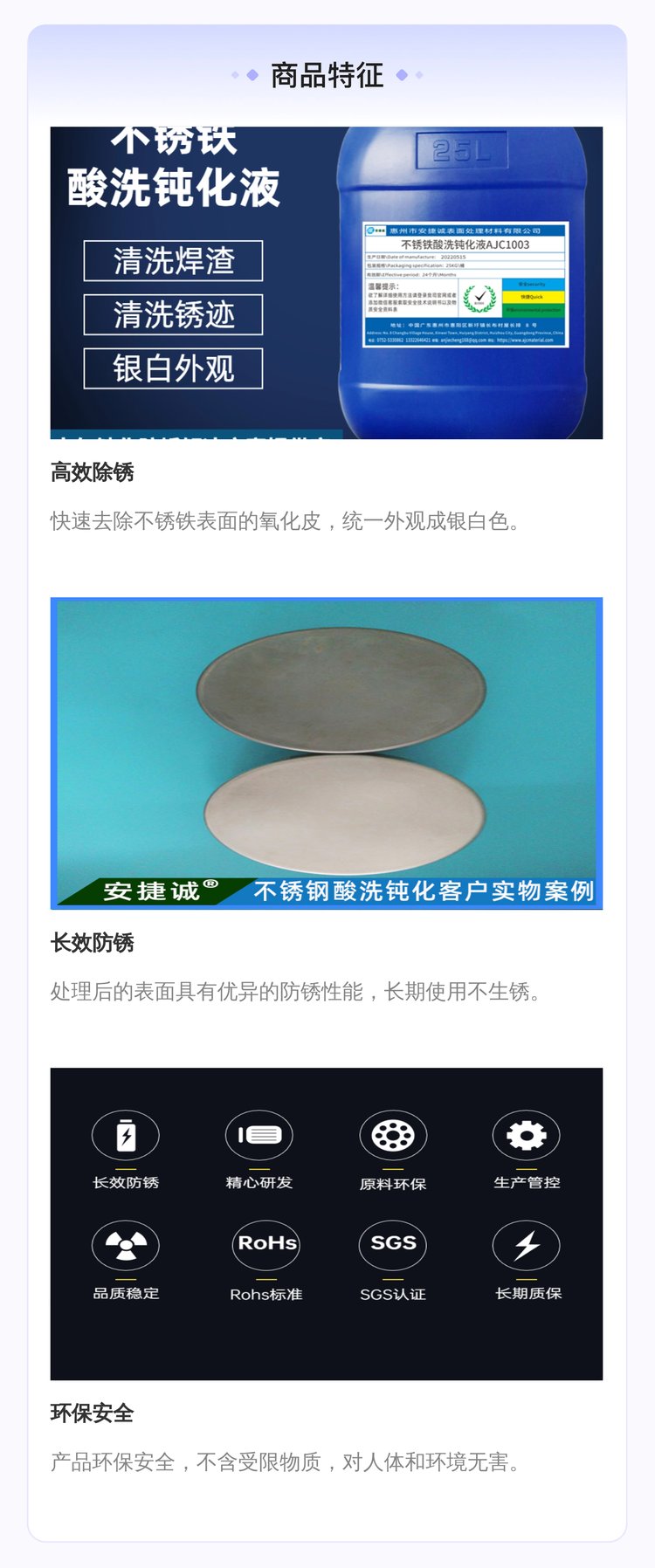 功能 | 除不锈铁表面的氧化皮,统一外观成银白色 | ||