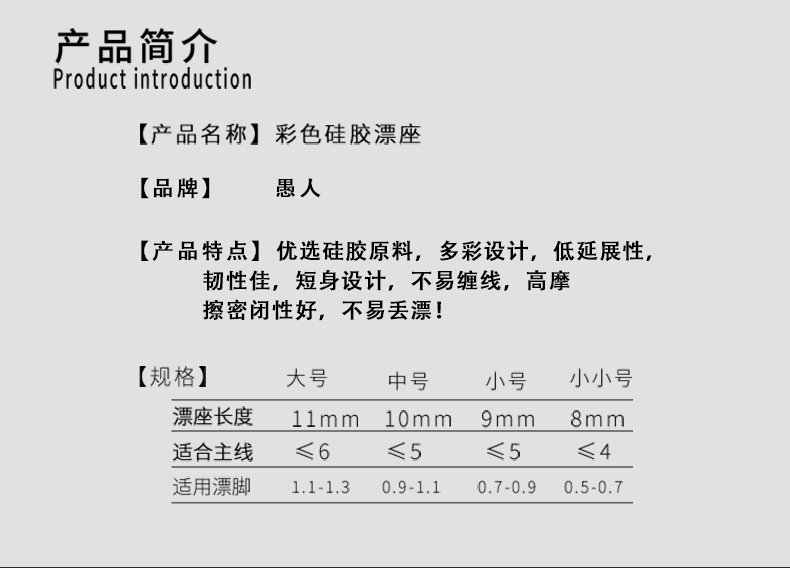 愚人 炫彩漂座色防缠硅胶竞技漂座高弹性浮漂垂钓鱼具配件