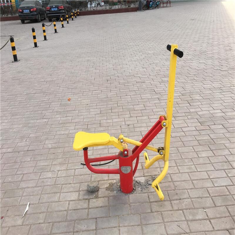 体育器材:双人坐蹬,单人健骑机,扭腰摩背器,双位双杠,太极轮,太极推手,三人旋转轮,腰部按摩器,三位压腿器,四级压腿按摩器,圆盘式三人转腰器,单人椭圆机,双人大转轮,腹肌板,三联漫步机,伸腰器,单人漫步机,两联漫步机,倒立架,伸背架,双人坐推,双人坐拉,双人儿童秋千,单人坐推,三人引体,双人旋转轮,单人坐拉三人上肢牵拉器,双人上肢牵引器,举重架,摸高器,棋盘桌,儿童跷跷板,腹肌训练器,坐式腰背按摩器,手掌穴位按摩器,腿部按摩器等,