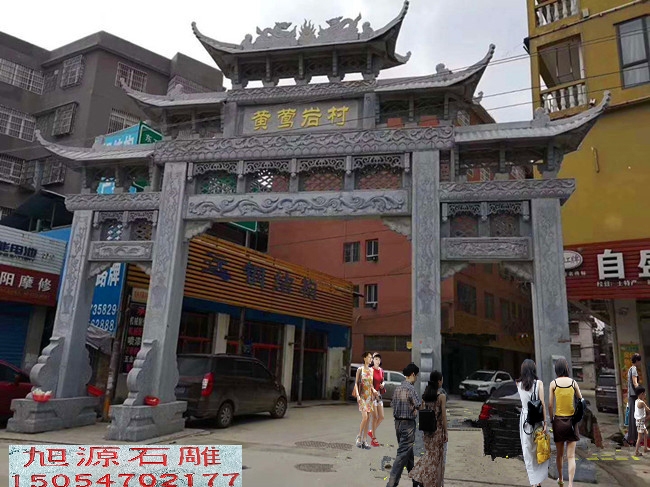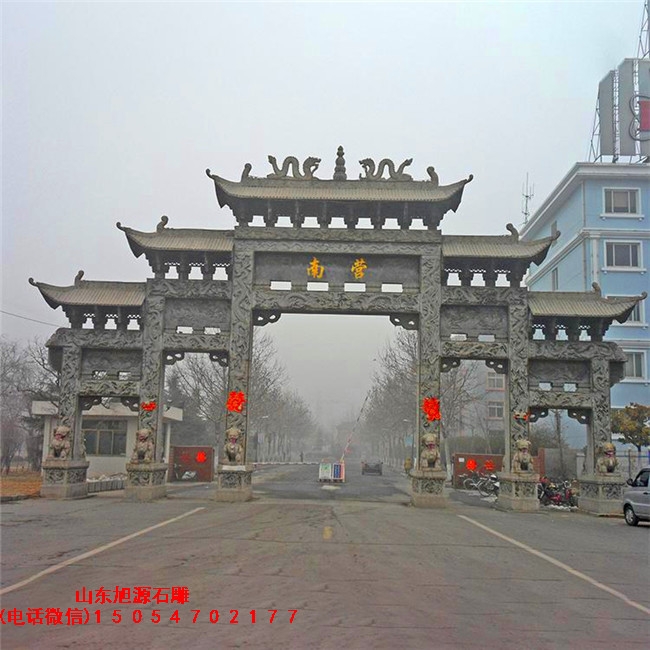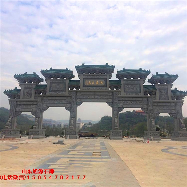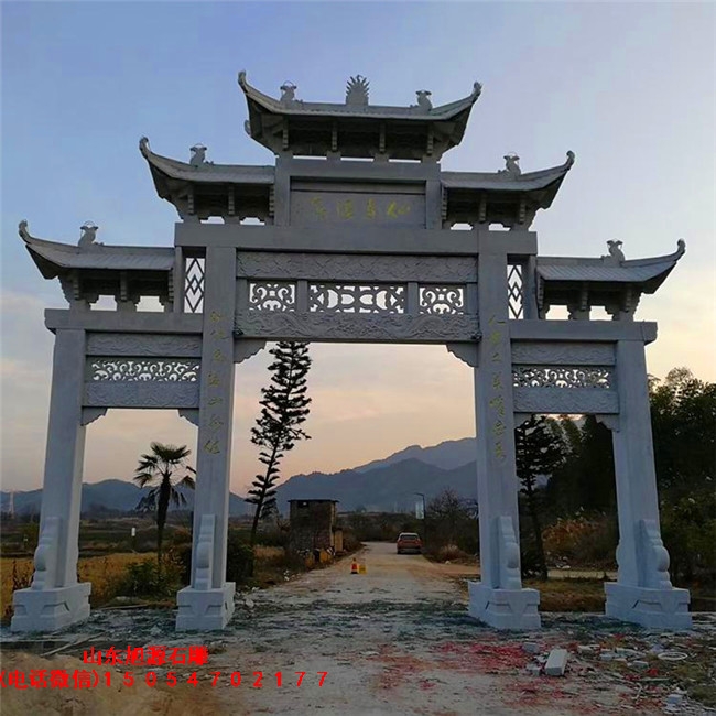 我们中国是一个佛教大国,各类大小寺庙寺院都比较常见,一般寺庙都建设在山上,在进入寺庙的山门入口一般设有寺庙山门牌坊或者寺院石牌坊。仿古牌坊及古镇牌坊除开在基本的设计构思上带许多说道外,石牌坊的总体结构设计构思常有许多规定,让这座石牌坊也都更加细致的手工雕刻之美。都建造在一些规模较大的景区园林中。从入口牌坊图片效果图来看,这种石牌坊,一般都是为造景而建,它的选址比较自由,入口石牌坊雕刻造型,或简或繁,也视周围环境而定。三门三楼农村村口牌坊样式村口牌坊中数量仅次于三门三楼的要数三门五楼样式了,这种牌坊比三门三楼样式要高档一些,在一些生活水平较好的村庄中常见,