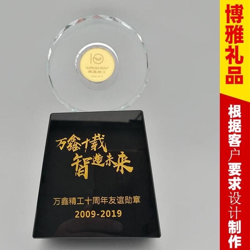 奖牌水晶奖水晶奖牌厂家年终表彰优秀员工奖品,水晶奖杯 会议表彰奖牌 水晶奖牌制作,水晶奖牌奖杯的大致制作过程,其加工的工艺流程也不同,但大致的工序如下:流程前的准备(制图设计,菲林输出,物料的准备)→丝网印刷→干燥→显影→水洗→除墨→化学蚀刻(蚀刻图案文字)→脱膜→表面处理。