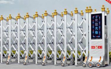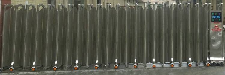 二、电动伸缩门根据材质分为不锈钢伸缩门和铝合金伸缩门。