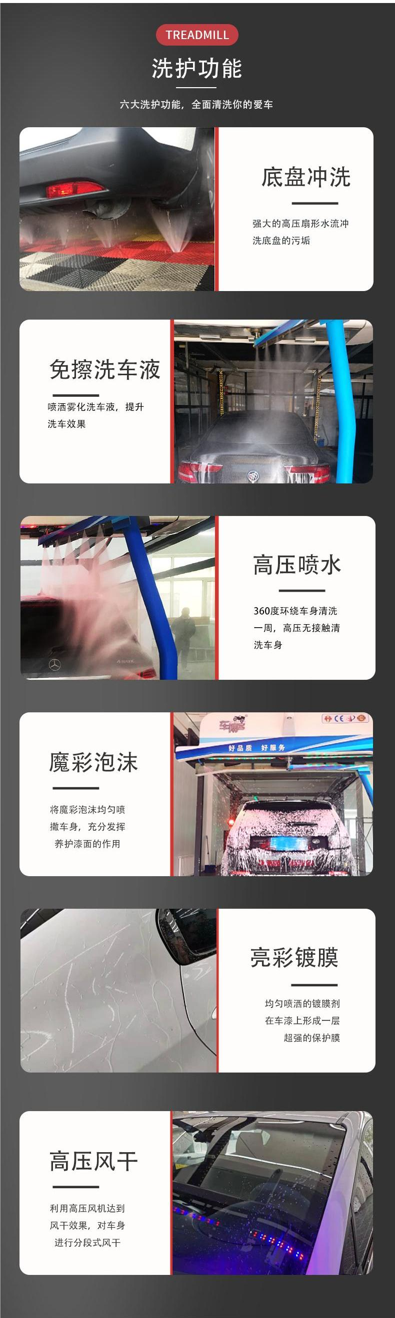 洗车方式 | 360度旋转喷淋免擦洗车 高泡洗车 | ||