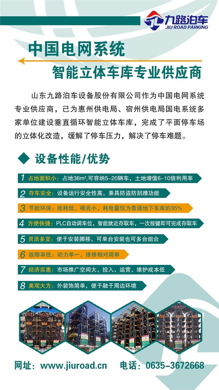九路泊车独特的产品优势和超高性价比,被中国电网系统甄选为垂直循环立体车库专业供应商。现已为惠州供电局、宿州供电局等国电系统多家单位,建造垂直循环智能立体车库,完成了平面停车场的立体化改造,缓解了停车压力,解决了内部职工的停车难题。