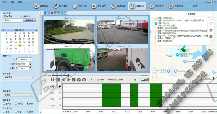 货车视频定位一体机设备集成高清车载视频监控系统,支持四通道录像,覆盖车辆全方位。无论是行车状态,还是货物状况,都能一目了然。支持远程实时查看,即使身在千里之外,管理也如影随形。