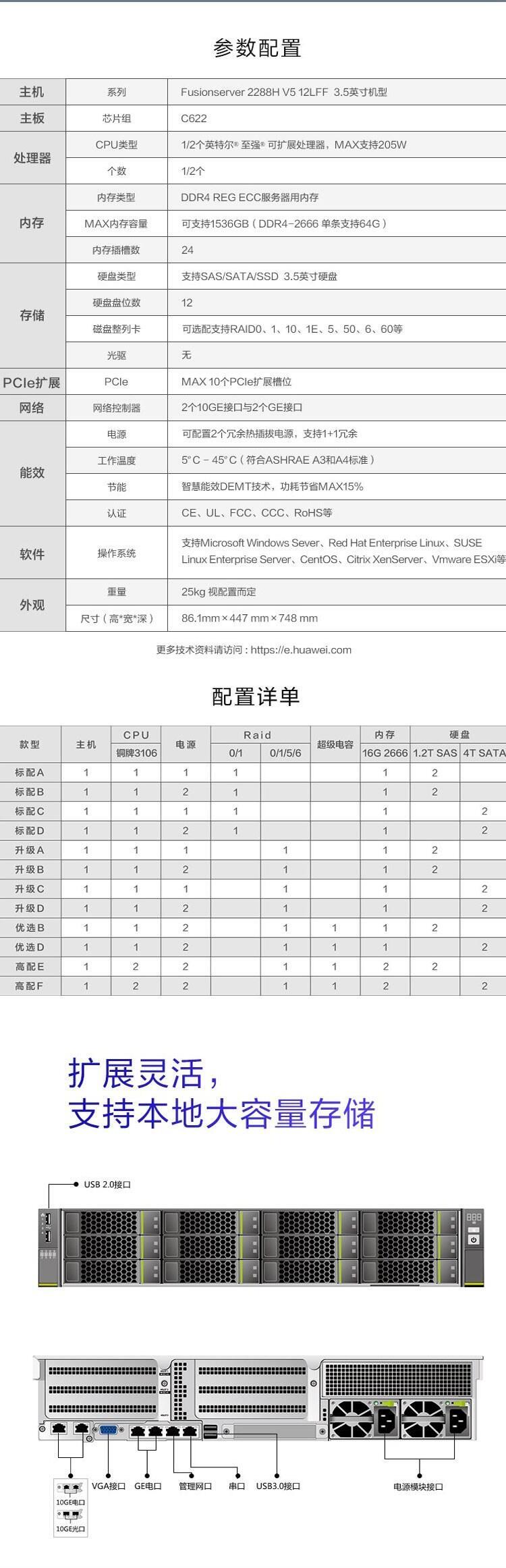 华为FusionServer 2288H V5机架服务器至强4210/32G/2T/阵列卡