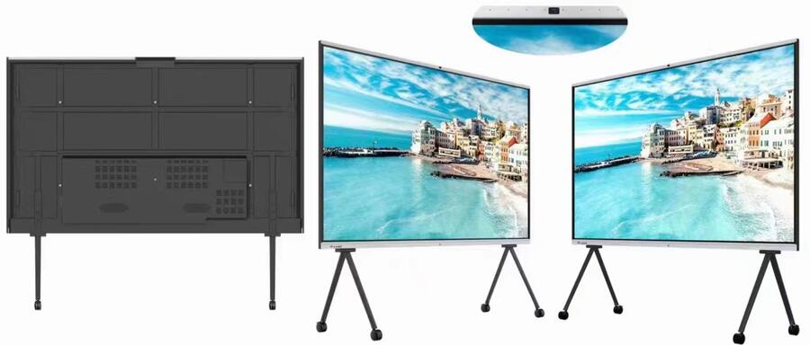 南京越梦98寸交互式多媒体会议一体机原装液晶面板,分辨率3840*2160,型材面框,20点触摸,高透白钢化玻璃,预留OPS接口,支持安卓/电脑双系统,安全一体化设计,铝合金外框,圆弧角防撞伤设计;机器面框前置式圆钮轻触按键,按键具有一键节能、一键开关机,一键开启电脑、一键切换信号源功能。