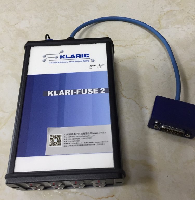 带CAN的低压模块KLARI-FUSE 2数据采集模块特点8通道测量模块,带8个并行ASIC和1个通用微控制器所有测量通道均可灵活地用于电流,电压或温度测量,每个测量通道一个PROBE测量技术在不同测量任务中的简单应用测量通道与接口CAN,USB和电源之间的80 V DC电流隔离?连接选项电流测量电压测量温度测量?功能在实验室和车辆中的应用:- 测量个体消费者的电流,电压和温度??- 通过1 x CAN 2.0 A / B输出数据,即8000帧/秒和/或USB 2.0接口