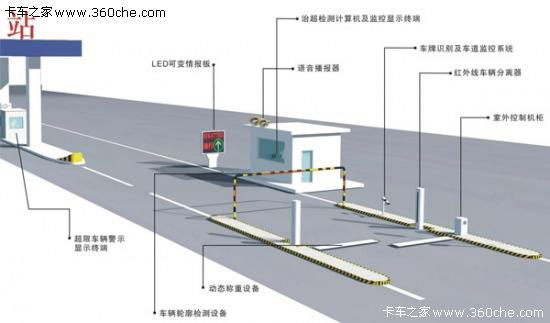 公路高速自动治超及超限系统主要由高速动态称重采集子系统、高速动态尺寸采集子系统、车牌识别子系统、车辆指示子系统和计算机管理子系统以及现场实时视频监控系统组成。系统的基本检测流程是:不停车自动预警检测——超限站精检(如附近有)——数据上传管理平台---预警报警通知(如有超载嫌疑),系统能检测公路主干线5~200km/h速度过往车辆的流量、轴型、总重、车辆长宽高、速度等参数,可快速识别超载超重和尺寸超限车辆,并能对超重可疑车辆进行自动导引,并提示超重可疑车辆驶入前方检测站进行精(复)检称重。