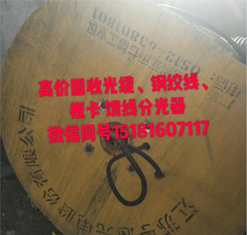 另长期回收光缆接头盒,光纤跳线,分光器,熔纤盘,钢绞线,铁丝,自承式绝缘抱箍,镀锌抱箍,镀锌夹板,镀锌拉杆,挂钩,OLT板卡,光缆终端盒,插片式/卡式/机架式/盒式分光器,超五类网线,分纤箱等通信设备。