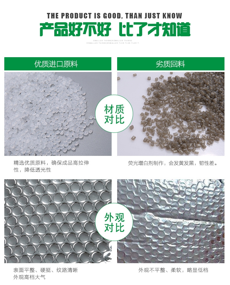 镀铝复合气泡膜(镀铝气泡膜)是气泡膜外面是一层薄镀铝膜,它是建筑物房顶、外墙阻挡阳光,地下室防潮 防水的物品。该产品也可有效用于遮阳、保温、地暖、建筑等行业。根据规格可以分为单面镀铝复合气泡膜和双面镀铝复合气泡膜。我们的产品可根据客户的需要订做各种尺寸的原卷、制袋及切张。