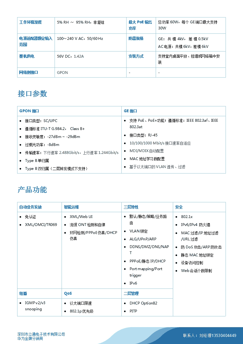 Huawei OptiXstar P612E-S 产品是面向企业园区、视频回传等场景设计的ONU 设备,可以提供 4 个带PoE/PoE+功能的 GE 接 口,为用户带来高质量的语音、数据和高清视频等业务体验。