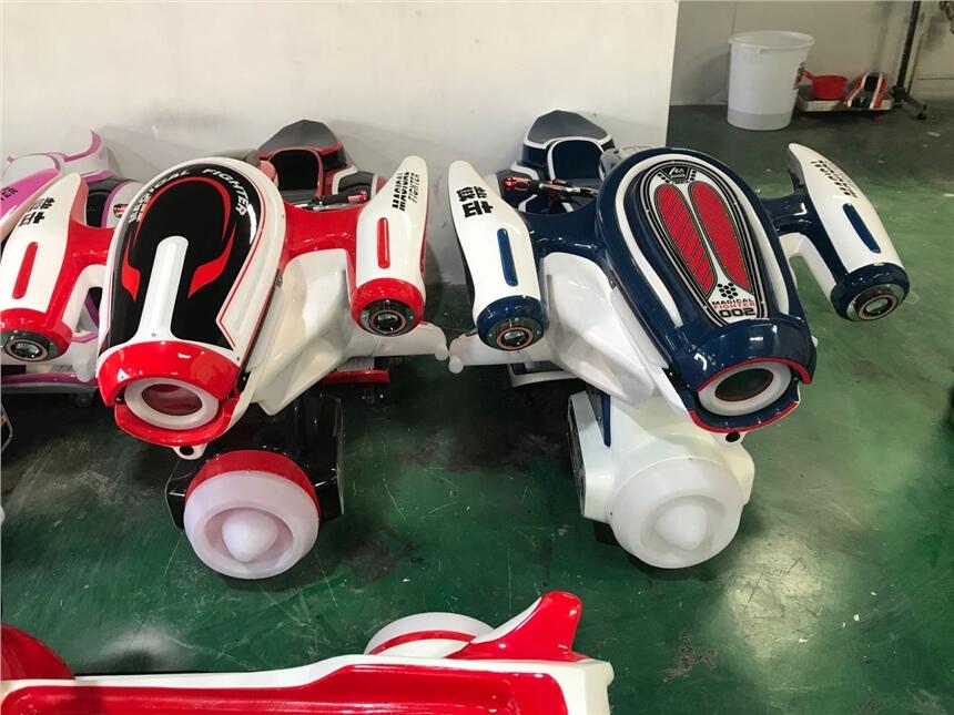 游乐设备新型乐吧车使用24V充电蓄电池供电,24V直流电机双驱动,一个操纵杆控制,可实现前进、后退、左转、右转、左右原地掉头、360°旋转等功能,控制系统全数字化显示,可设定1-30分钟自动定时关机、无限次累加计数、无线遥控启动;也可以设定数台车同时启动、同时结束;内置32MB立体声MP3歌曲,可扩展MP3功能,支持SD卡和U盘播放MP3歌曲,快慢档调节功能。 整车全部采用钢结构(聚氨酯、不锈钢),车载全自动充电器,充电电源220V。充电时间:6-8小时。可工作时间10小时。分遥控计时、投币两款可选,颜色随机发货,每款都好看。