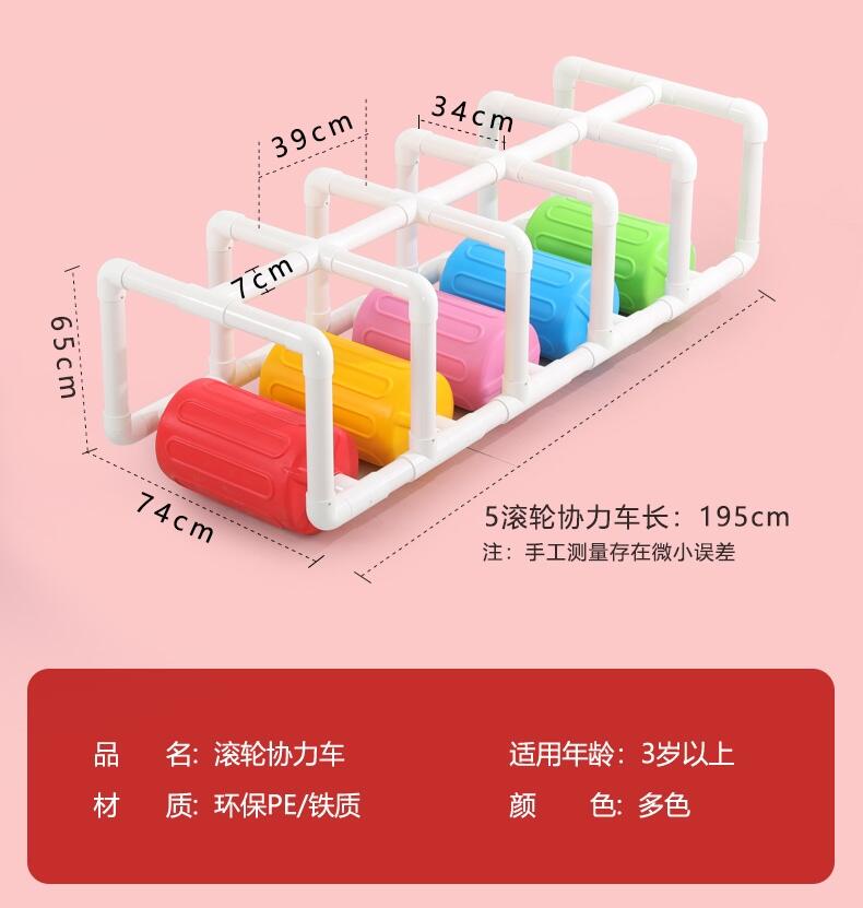 优质材料打磨光滑细腻,选用优质环保材料无毒无味,打磨光滑,不会伤害宝宝幼嫩肌肤。安全放心。儿童玩具感统训练器材,滚轮协力车,锻炼宝宝身体机能,刺激前庭感官。
