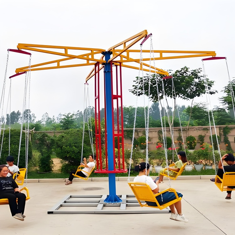 6 人旋转飞椅适用的场地非常广泛。它可以安装在无动力游乐园、主题公园、景区等场所,为游客提供娱乐项目。在游乐园中,旋转飞椅通常是热门项目之一,吸引着众多游客前来体验。主题公园则可以根据不同的主题设计旋转飞椅的外观和装饰,使其与主题相融合,增加游客的沉浸感。景区也可以设置旋转飞椅,让游客在欣赏自然风光的同时,还能体验刺激的游乐项目,丰富游客的游玩体验。此外,一些大型商场、广场等场所也可以安装小型的旋转飞椅,作为吸引人气的手段。