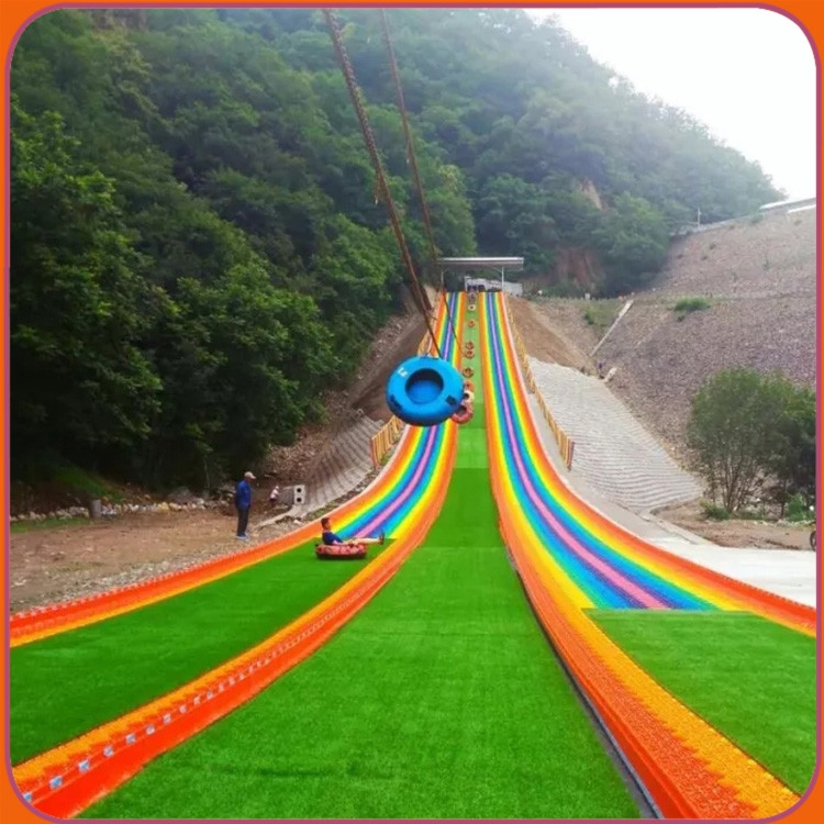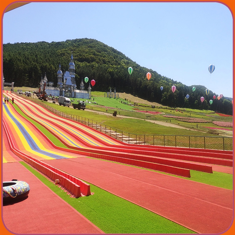 七彩滑道需要的场地不受限制,有时候可以占据整个山坡,当人们从上往下滑坡的时候,会让人感受风一般速度的同时又能领略到大自然的美好。