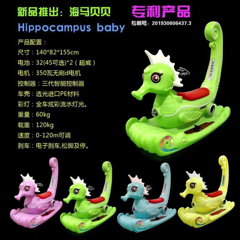 海马贝贝是根据海马为原型打造的一款儿童充电碰碰车,流畅的海马外形搭配上多色流动灯带和多种炫彩灯球,让这款车子非常绚丽耀眼