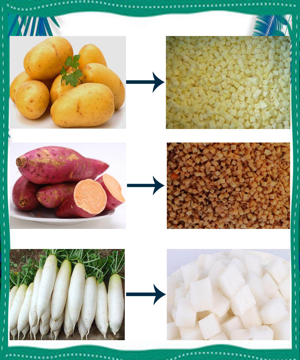 产品用途 | 将蔬菜一次性切成丁或块 | ||