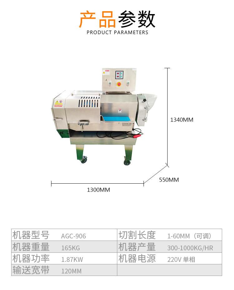 1、叶菜类:可切长条状葱、大蒜、韮黄、芹菜、菜、大白菜等切段,输送带与切刀的转速采用变频器控制可以调切所切割的蔬菜长短。