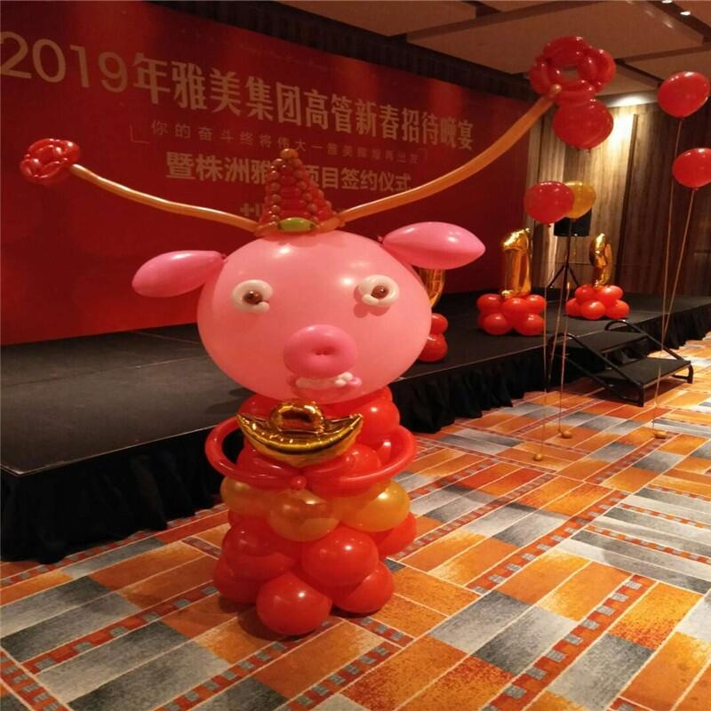 长株潭年会怎样布置?年会怎么样布置别出心裁,活跃气氛?同心文化推出原创年会气球布置,金猪闹新年,气球布置年会效果图,年会原创气球布置。年会布置一条龙策划