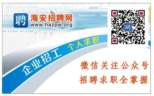 海安招聘网-www.hazpw.org是海安地区创办时间最早,影响力较大的人才招聘网站。汇集海量海安人才信息,服务于海安企业,企业和个人免费注册会员.海安招聘网凭借先进的技术、专业的服务为企业招聘、个人求职提供快速互动的交流平台,提供包括求职、招聘、咨询等服务。