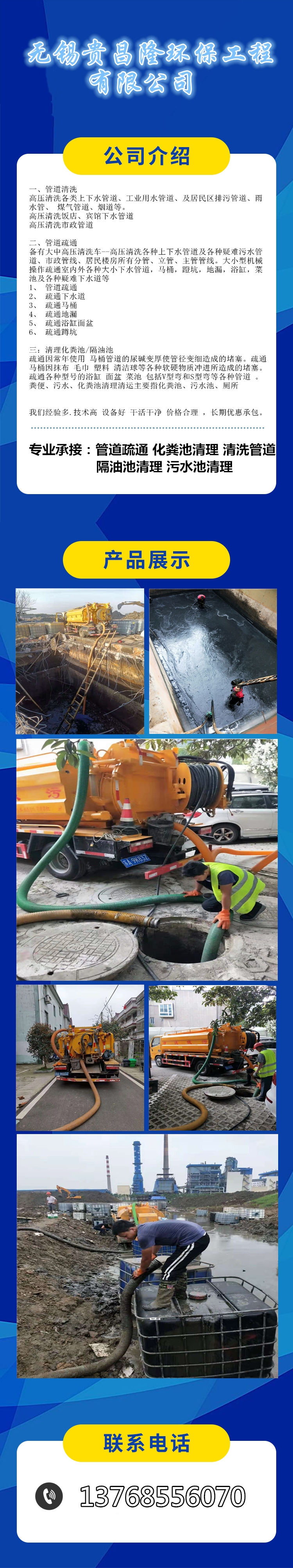 服备有多台吸污车,吸粪车,高压清洗车,专业抽下水井,清理化粪池,清理隔油池,高压疏通各种市政及小区,厂矿的下水管道,管道清淤及地沟清理,污水清运!彻底清除因油垢及泥沙而引起的各种管道堵塞!