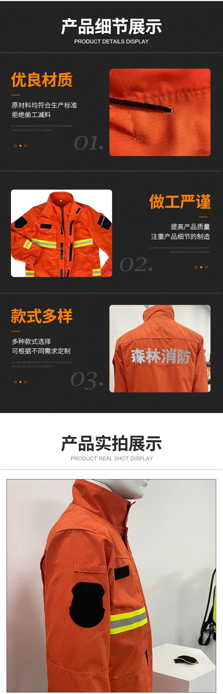 用途 | 本类服装适用于森林火灾抢险救援时救援人员的防护穿着 | ||