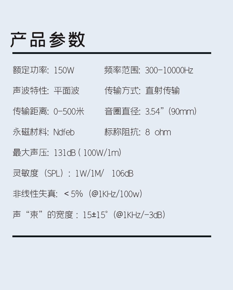 声“束”的宽度 | 15±15°(@1KHz/-3dB) | ||