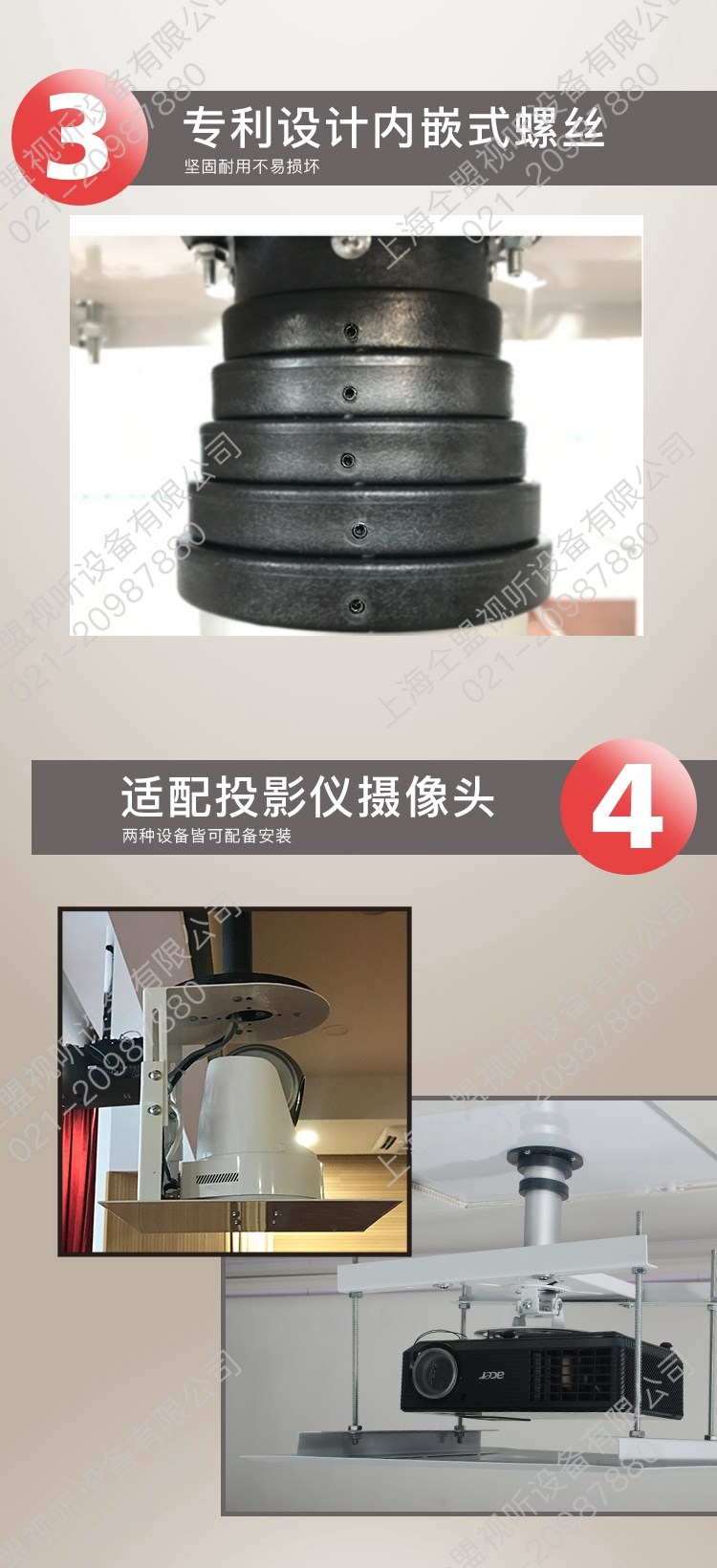仝盟投影仪摄像头支架电动升降吊架单杆管内走线可隐藏