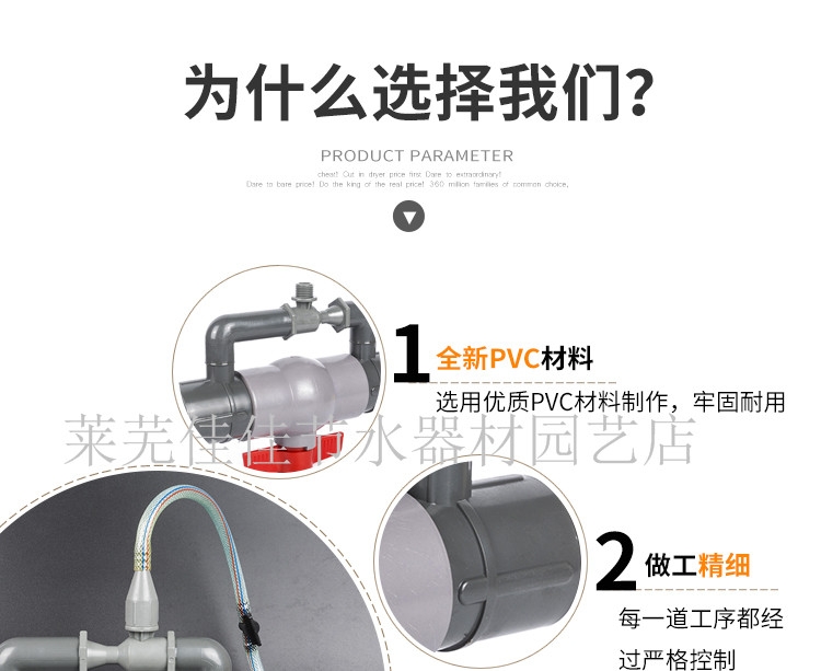 公司开发生产的滴灌、微喷灌、涌泉灌、农田低压管灌、高压喷灌、过滤器、施肥罐、给水栓等系列产品,全部经质监部门检测合格,质量可靠,配套齐全。我们可为您的工程提供现场规划设计、送货上门及安装指导,欢迎新老客户实地参观考察指导。公司愿以先进的技术、优质的产品、合理的价位、满意的,期待与您的真诚合作!