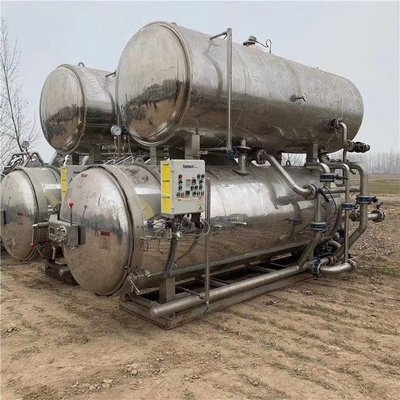 蒸汽加压完全水浸式杀菌锅内所有的容器被完全浸没在水中。水是加热介质,额外的蒸汽是过压源。杀菌锅为卧式。这些杀菌锅有一些特有的测量仪表和操作特性。用泵进行水循环。水通常是通过外部的混合室由蒸汽直接喷入进行加热。蒸汽也是从杀菌锅顶部高出水面处引入进行加压。