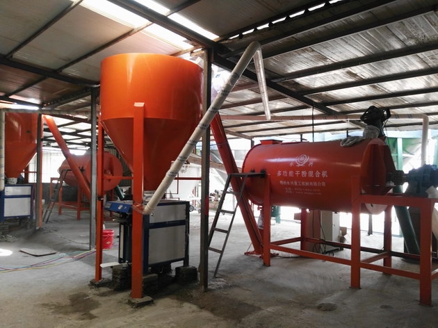 该砂浆设备自动化配置,另外配备二次螺旋输送系统,成品储料仓,基于多螺旋带式搅拌机的自动包装机,组成一台高能合理的简易干粉砂浆搅拌机,成本低廉。该设备占地面积<20m2,高度<3.5m,容量为每天25-30t,仅需2-3人,操作非常方便。