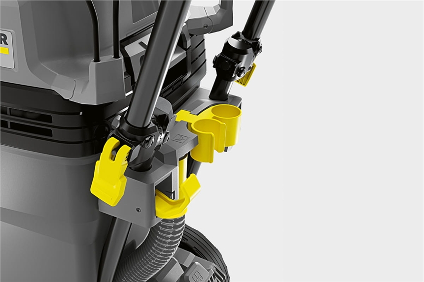 NT 50/1 Tact Te L干湿两用吸尘器,无论是细微粉尘,粗尘,还是液体,NT 50/1干湿吸尘器都可以轻松应对。它拥有50升的大尘箱,耐油排水软管,以及高度可调的推把,可用于清洁工作场所,生产车间,以及建筑工地。并且NT 50/1 Tact专为工业、建筑业上有着最严苛需求的客户而设计,其搭载的全自动过滤器自清洁系统和防水PES平褶过滤器可以实现每天不间断、无尘工作的专业要求。带有自动开/关的集成电源插座,可以更容易的搭配电动工具工作;中央旋转开关,控制过滤器自清洁频率,吸力大小则通过另外一个单独的旋钮调节。附件可以方便地存储在机器上。