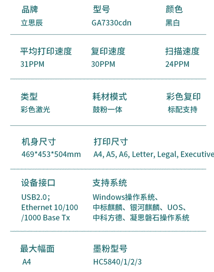 立思辰(LANXUM)A4彩色多功能一体机GA7330cdn、打印/扫描/复印、自动双面