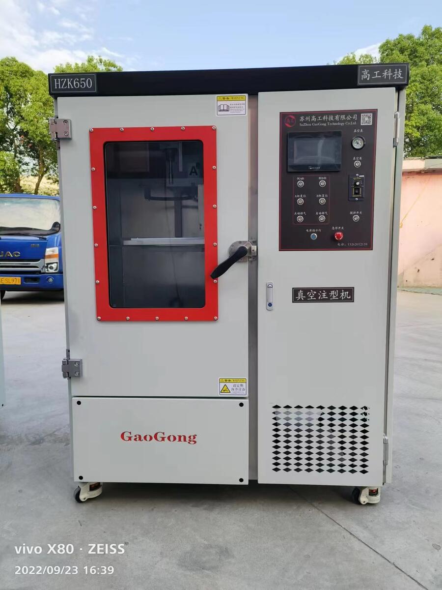 6、将真空脱泡后的硅胶取出倒入围框,再入真空室进行真