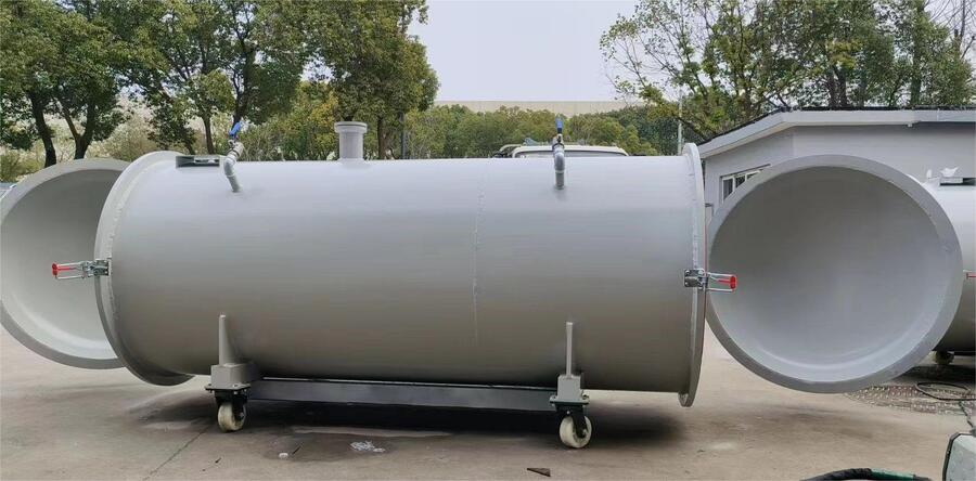 压力缸使用描述:将产品放进桶内把桶盖旋转到桶身正上方(旋转轴有限位柱,桶盖与桶身同心时停止转动),气缸进气,桶盖下压当接触到密封圈时,气缸泄压,锁紧吊环,桶加气压时,保压一定时间后,将桶泄压,拧开吊环,然后气缸进气将桶盖升高,再将桶盖移开取出产品。
