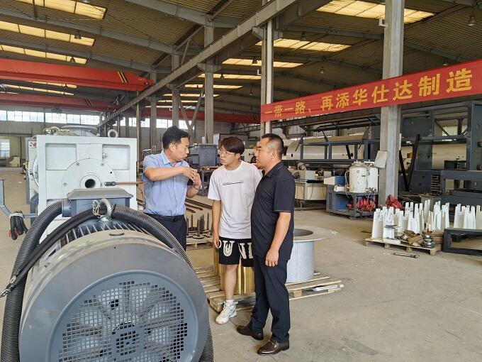 一次关于保温管设备的介绍,就能让前来考察的客户折服的,除了青岛华仕达机器股份有限公司的创始人黄保东外,可能没有几个人能做到。这不仅是因为华仕达的保温管设备的确技术先进、高速高效、稳定可靠,更重要的原因,是因为黄保东本身就是上述核心技术研发的参与者,更是实践者。正是因为黄保东对保温管设备的热爱,才有设备的技术在行业内始终处于领先地位,也成就了华仕达的保温管设备被省市相关部门授予了“专精特新”产品的称号。而来自内蒙古恒瑞凯建设工程有限责任公司的刘总,就是被黄总介绍所折服的其中一个,因此而十分高兴地采购了华仕达的保温管设备。