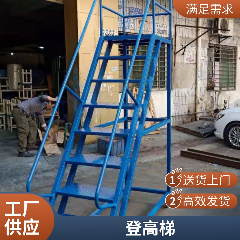 踏步梯是用高强度方管、角铁、钢管做为机架,防滑花纹钢板做为台阶制造而成,两个脚轮带刹车,移动灵活方便.登高梯(车):登高车采用优质钢材制造配以优质脚轮;既可做为物料搬运与周转的承载工具,又可以作为登高取货的辅助作业工具,?具有安全可靠、结构简单、方便快捷的特点;特别适合于工厂、仓库、图书、标准件等环境下轻小型物料的人工拣货作业。登高梯厂家批发 质量保证!!