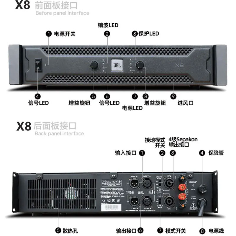 JBL X8 功放机 卡拉OK功放 KTV功放 功率放大器 后级功放 会议室音响功放话筒