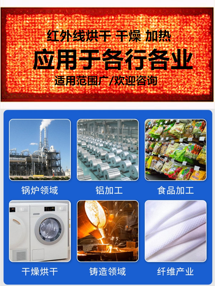 2. 红外线辐射加热,利用红外线的穿透性,使被加热物体吸收红外线产生分子热运动,内外同时受热。相对于常规加热(火焰、热风、蒸汽干燥等对流加热)能大大提高干燥速度。