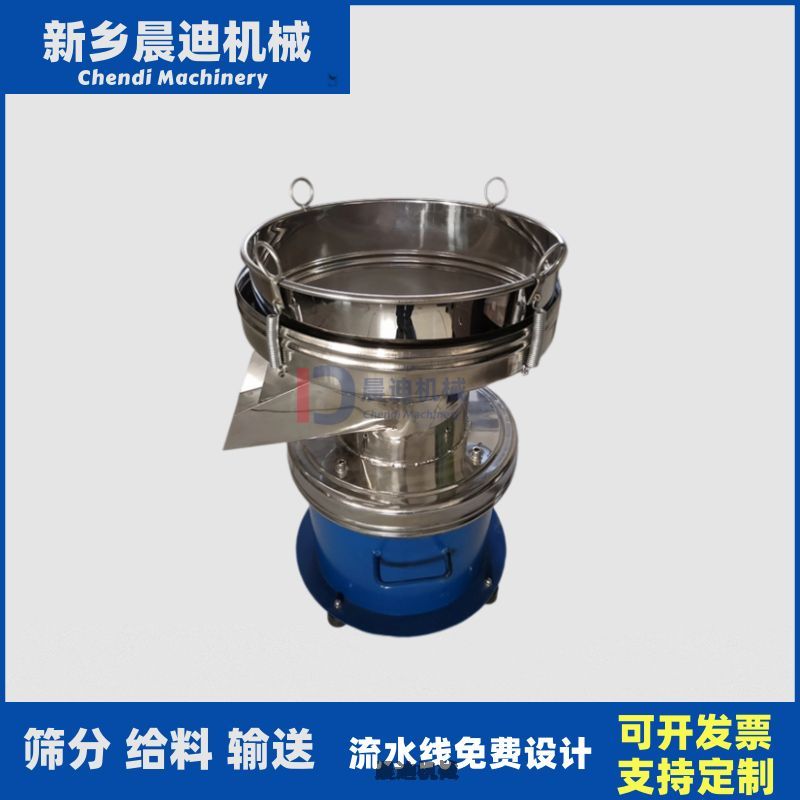 450过滤筛是一种单层筛分过滤设备,广泛用于食品、医药、实验等行业,可用于处理生产量小杂质少的物料,该设备通过重锤激振产生三维运动轨迹,实现物料高效筛分,具有400目精细筛分能力及防堵网设计。其结构包含筛筐、振动装置、电控系统等核心组件,采用不锈钢材质与紧凑型设计,支持快速换网和连续生产,450过滤筛主体由机体、振动装置、下料斗、筛筐及电控系统构成 [1]。筛框采用金属丝编织网设计,部分机型配备超声波振动组件以提高清网效率,电机驱动重锤产生激振力,使筛体形成水平、垂直、倾斜的三次元运动。物料在筛面中央向外扩散运动,细小颗粒或液体透过筛网完成分级 。